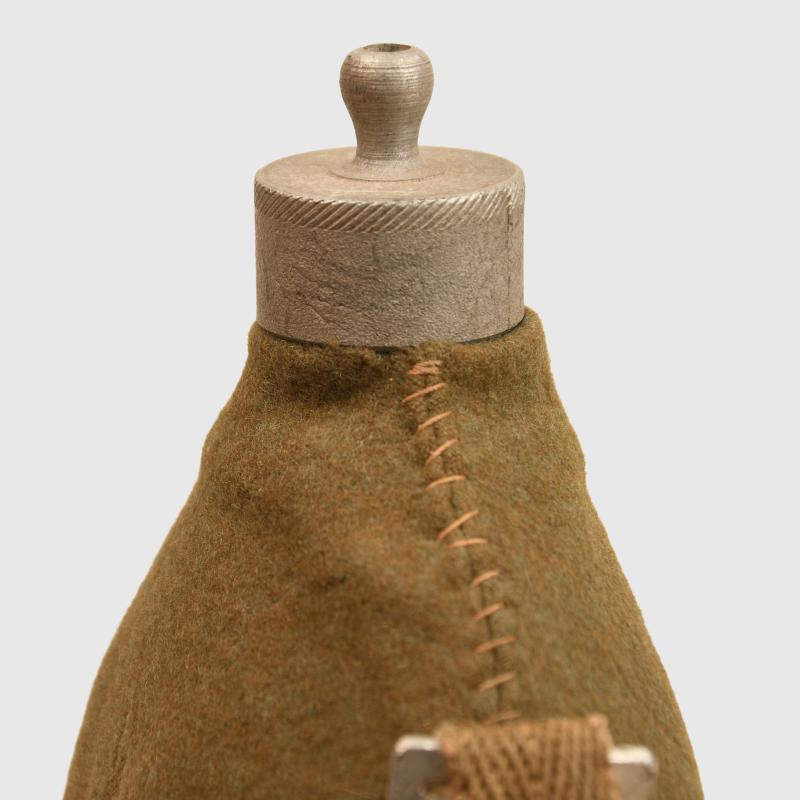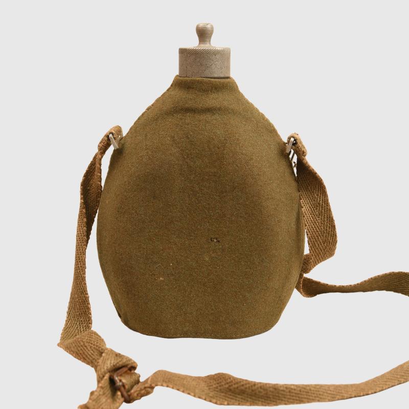 A nice condition enlisted mans water bottle, felt covering good with minor moth nips, complete with its webbing shoulder strap, screw off stopper in aluminium.