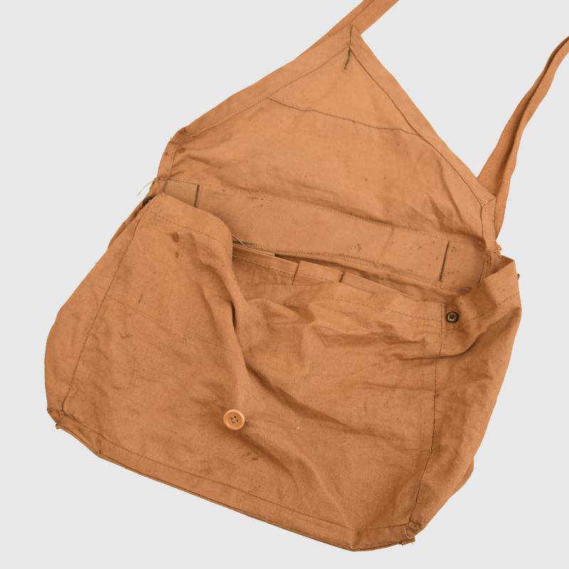 Small lightweight haversack/side bag with shoulder strap, single button closure. Issued to the forerunners of the Home Guard the local defence volunteers as a side pack.