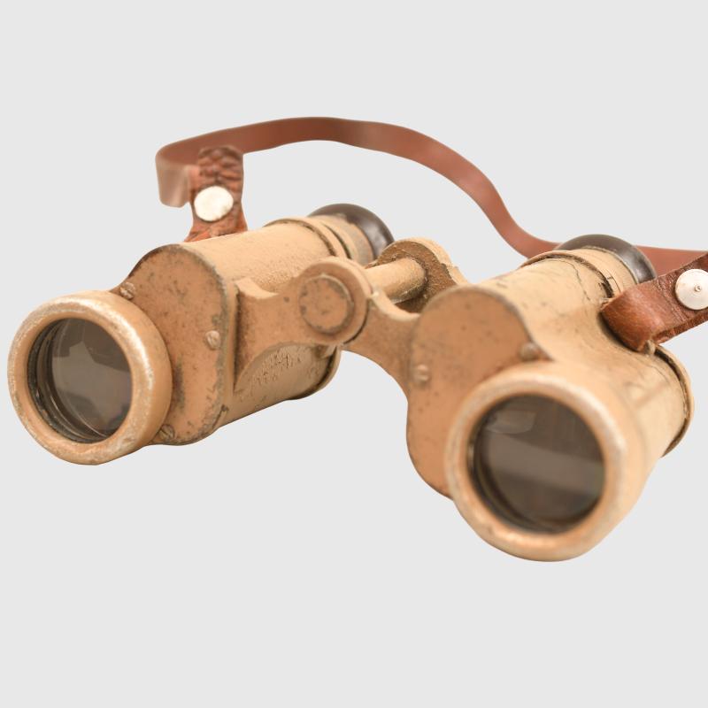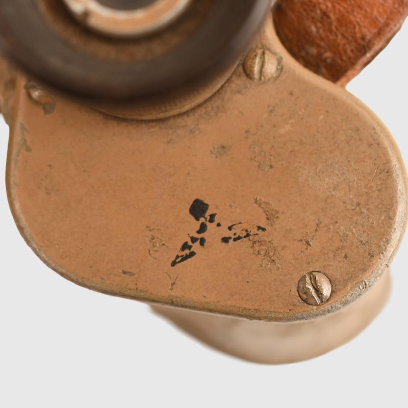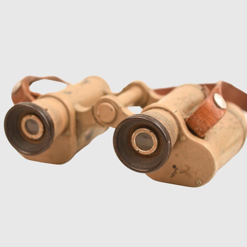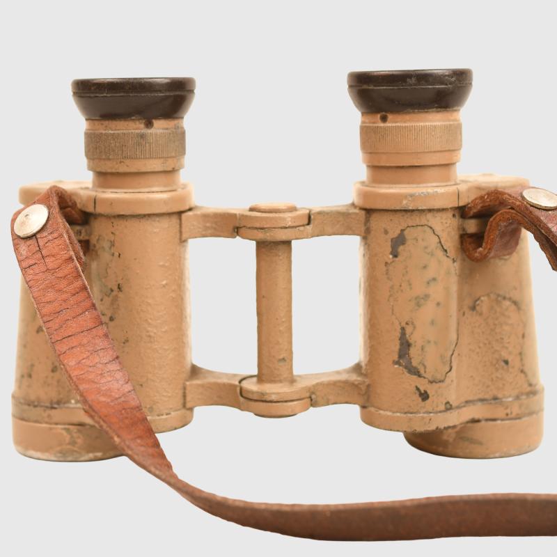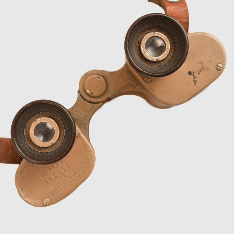 Optically good, lenses possibly need cleaning, replaced neck strap undamaged Bakelite eyepieces, marked Dienstglas 6x30 311785 , maker code DDX, some of the crackle finish missing from the main body, binoculars are tan painted.