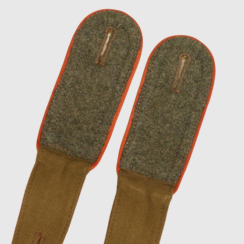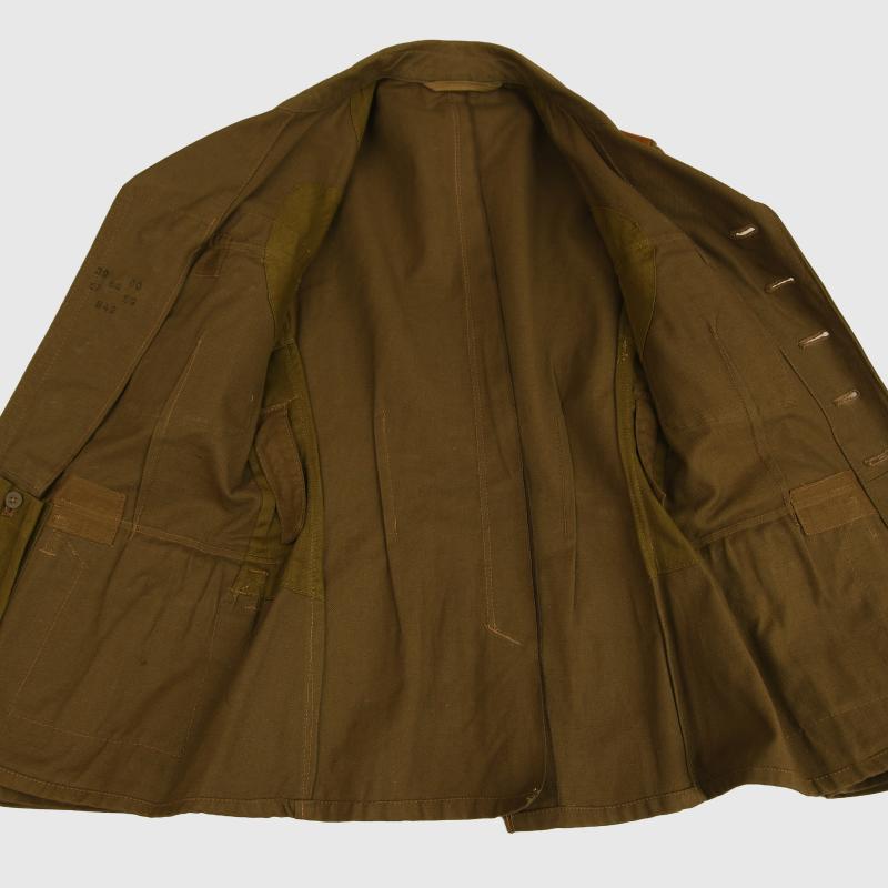 The tunic is unworn, fully size stamped with the depot code of ‘B42’, this indicates that this is a late production 1st pattern tropical tunic. Being a late pattern the eagle fitted is the 2nd pattern Bevo woven blue on tan, standard tropical machine sewn collar patches, nco tropical tress to the collar. The shoulder boards are superb being the silk piped copper brown reconnaissance colour, the material of the shoulder boards match the tunic exactly and have grey underlay indicating that they are 2nd pattern period 1942 production shoulder boards. All of the buttons are removable. The maker mark of ‘Wilhelm Viohi & Co Berlin’ stamped to the bandage pocket. Upper medium size. It would be extremely difficult, if not impossible to find a tunic in such unused condition and with this rare arm of service piping to the shoulder boards. More extensive, extra images can be seen on our new Premium website, type in regimentalsmilitaria.co.uk in to your web browser.