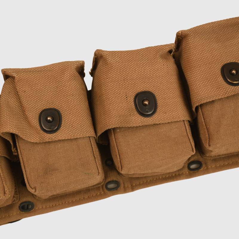 A super piece of equipment, absolutely mint condition being the waistbelt with 10 individual pouches for medical equipment and a further hanging pouch, clearly marked at the back of the belt ‘Mills Company April 1918’ to both the belt and the lower pouch. Each pouch is full of its original contents, the bandages are marked ‘December 1917’ the lower pouch having a small compliment of original instruments and a diagnosis tag booklet marked ‘U.S. Army for use amongst sick and wounded on the battlefield’ with its original pencil.