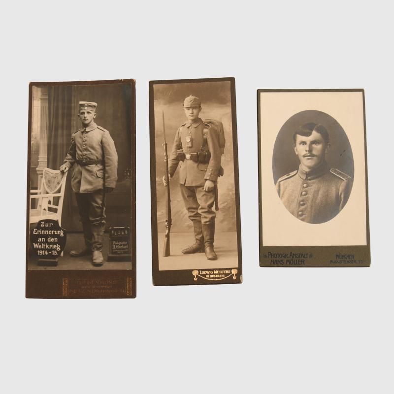 All studio photographs on hard card. All of the subject wearing field grey with pickelhaubes, feldmutzes, visor caps.