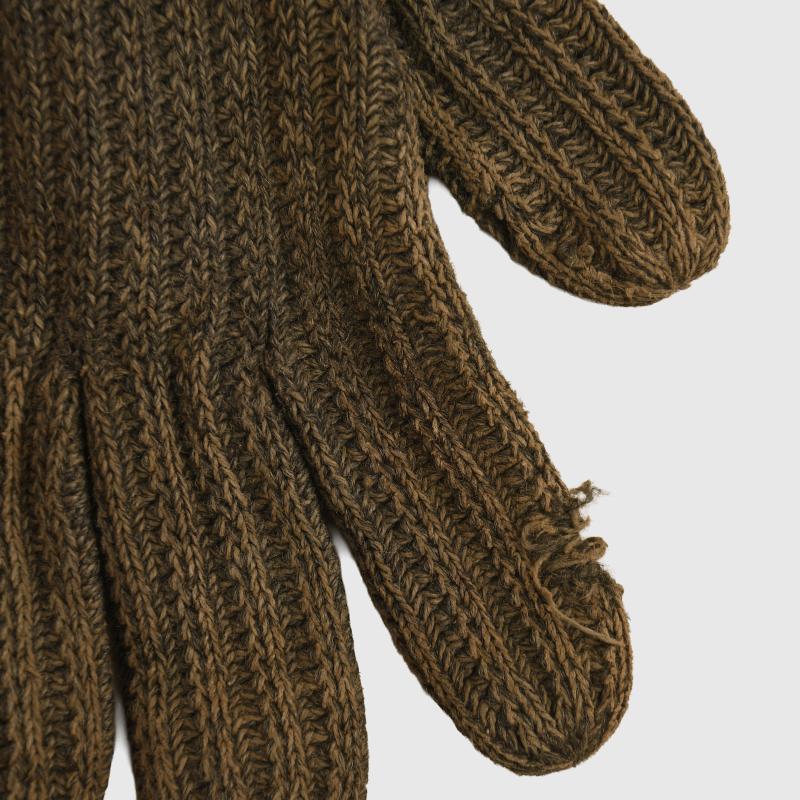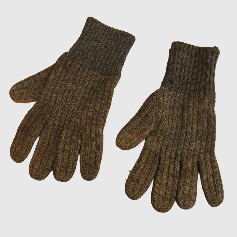 Three white woven bands into the gloves indicating the size. Some slight moth and wear overall.