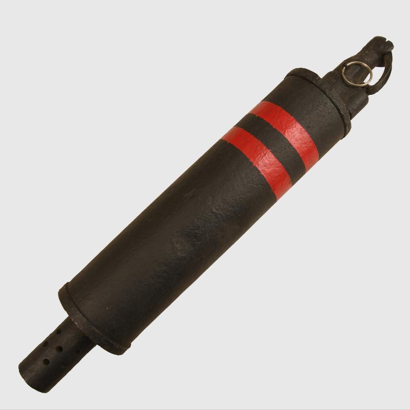 A restored 3 inch Stokes mortar bomb, evidence of corrosion to the body, but fortunately not too deep the item has been repainted for display, we are unable to export this item out of the United Kingdom.