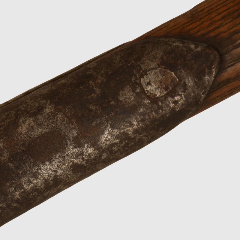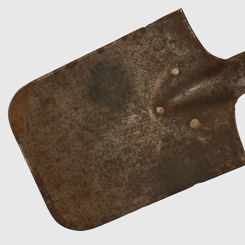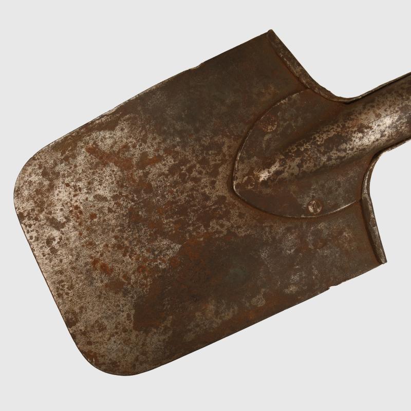 A used German entrenching tool, WWII, maker marked and dated ‘1936’. Some minor corrosion to the head, wood haft excellent.