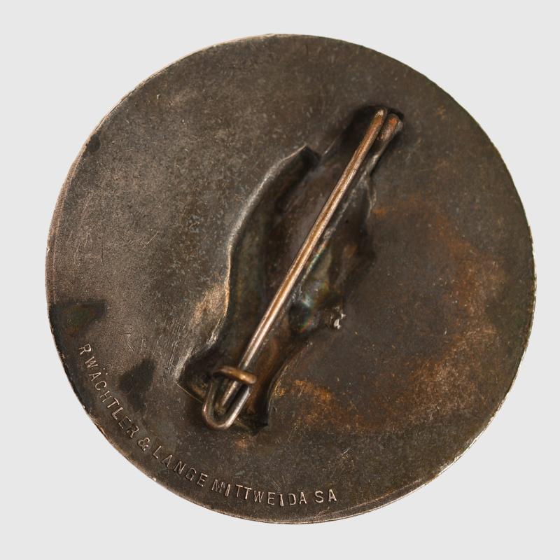 A very nice clean condition all white metal example of the 1934 NSDAP oath of allegiance badge, a good heavyweight example, maker marked in raised relief on the reverse side, with its heavier weight than normal tinny type fixing pin.