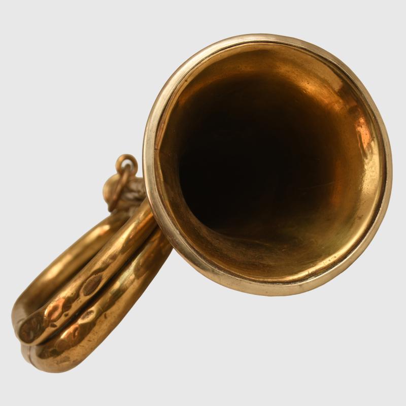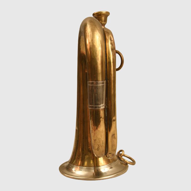 An extremely nice condition all brass and nickel bugle having the overlaid brass insignia of the SA with the original maker’s tablet in white metal above the SA eagle and swastika. Complete with its mouthpiece and hanging rings. Only very minor indentations to the lower part of the tubing.