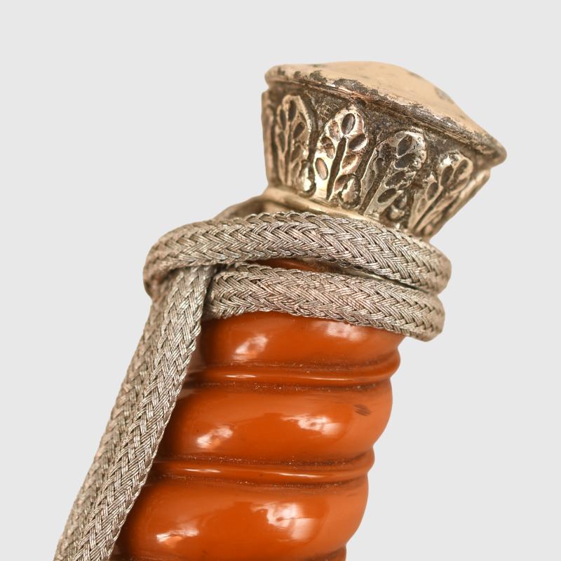 A superb blade by WKC of Solingen. All cross grain finish, good sharp square edges to the flat top of either side of the blade. The colour to all the fittings, the upper pommel, the lower ring, cross guard and scabbard all match in colour and quality. Deep orange grip without any cracks or chips. Complete with its portapee knot and an extremely good set of officers standard hanging straps. The sale of Knives, other Edged Weapons and Firearms are restricted to those aged over 18. Verification of age is required before purchase is concluded, this will include providing a scan of photo ID including your address and in some cases may require video verification by FaceTime or WhatsApp video, at Regimentals discretion, until formal laws on this requirement are enforced in the UK.