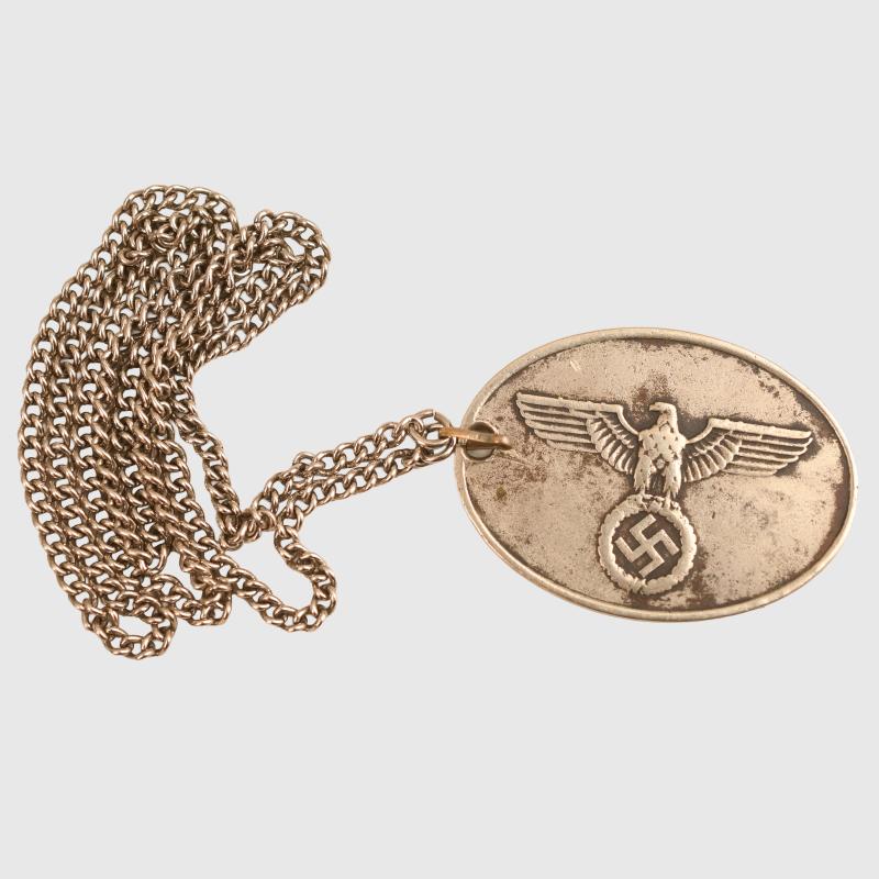 GERMAN WWII GEHEINE STAATSPOLIZEI (GESTAPO) WARRANT DISC.