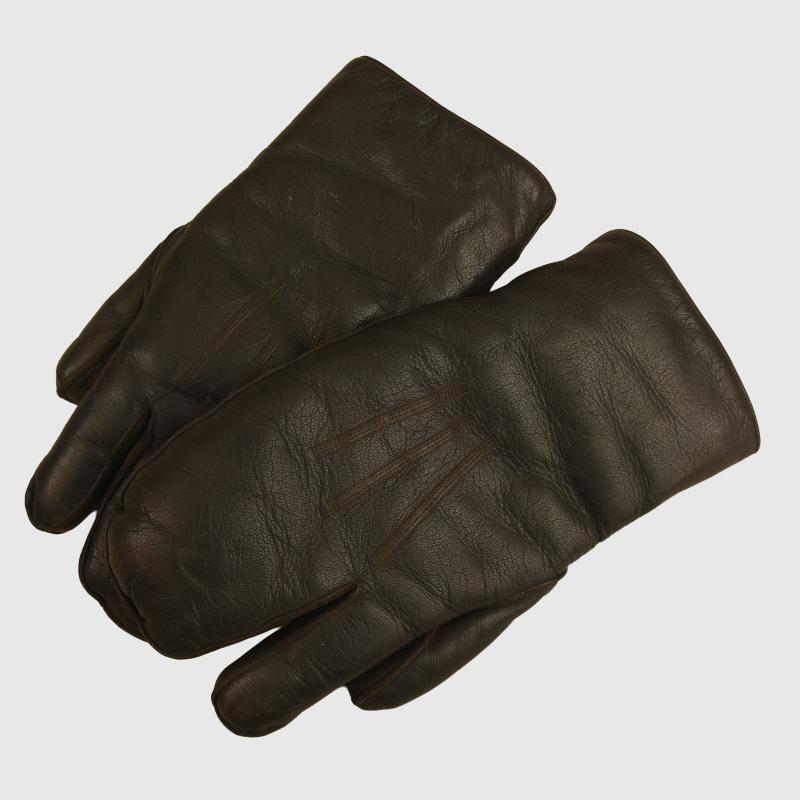 A nice service worn pair of flying gauntlets having a single finger and thumb aperture. Fur lined to the inside with one glove having both of its Luftwaffe blue grey adjuster tabs the other one has one of the adjuster tabs missing.