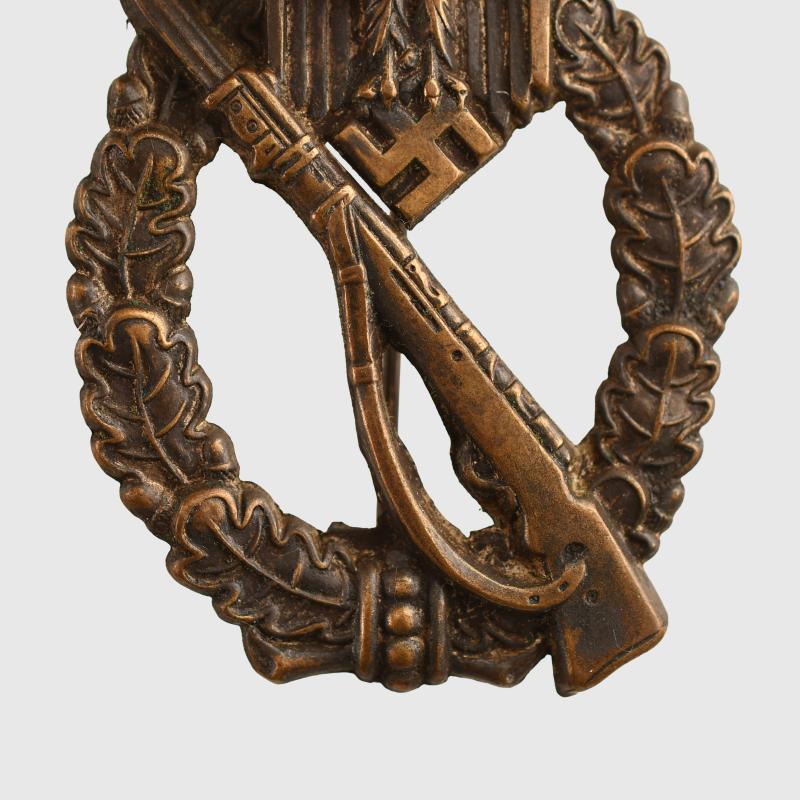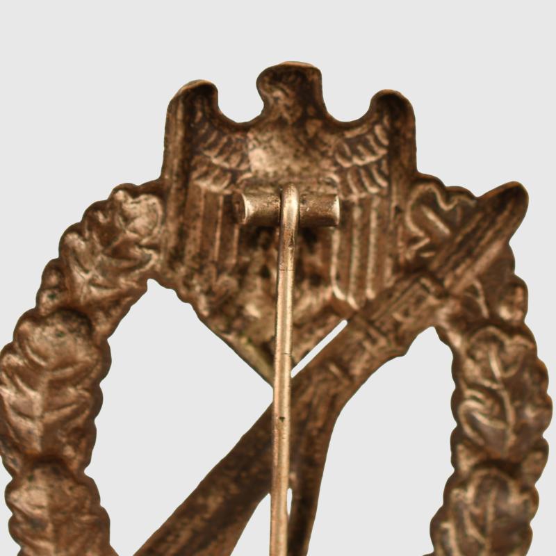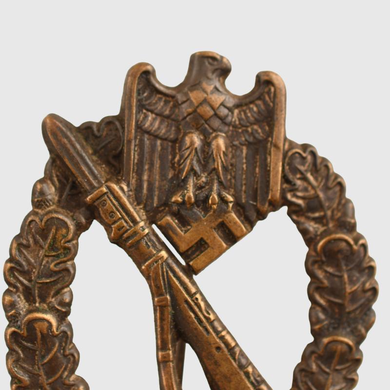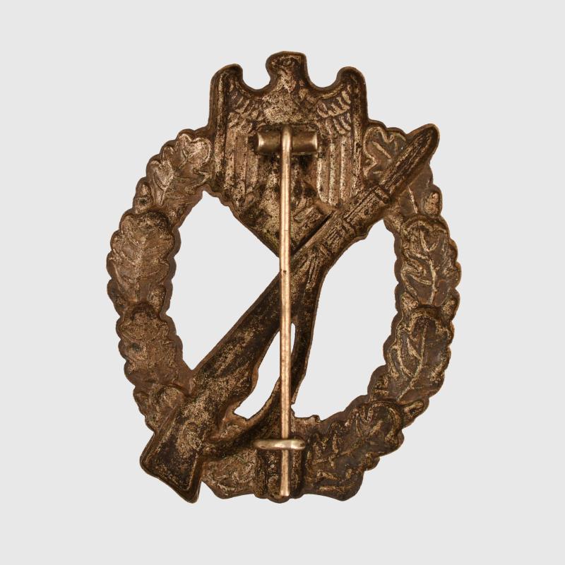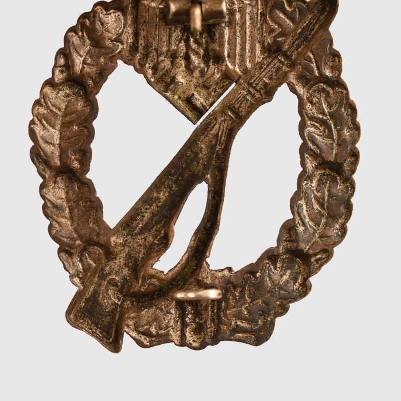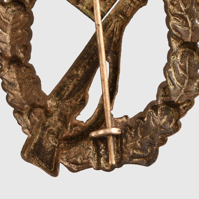 A very nice unused one-piece stamped example, all bronze finish remaining, with its original pin hook and hinge.