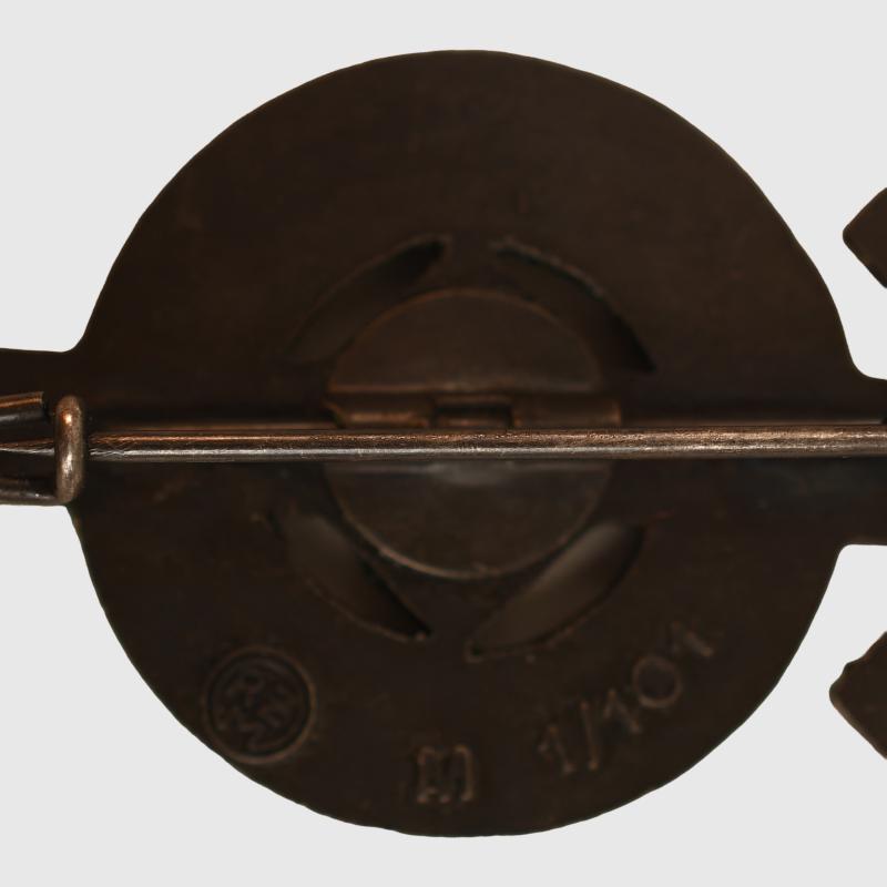 A very nice clean example of the bronze proficiency badge, this is an individually awarded piece, numbered 49516, ‘marked RZM M1/101 on the reverse side, complete with its large size tinny type fixing pin.