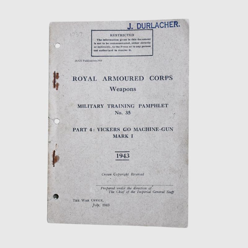 A magnificent condition extremely rare de-activated Vickers K gun. Good blued finish overall, ‘VAC’ (Vickers Armstrong Company) stamped to both sides of the wooden grip, complete with its magazine and its webbing carrier, its anti aircraft sight. Well marked ‘Vickers GO Mark 1’ close to the grip, gun number ‘54963’. The gun is complete with its 1990 de-activation certificate, match number on the certificate ‘54963’. The gun is complete with its Royal Armoured Corps Military Training pamphlet, part 4, Vickers GO Machine Gun Mark 1 dated ‘1943’. The Vickers K machine gun known as the Vickers gas operated .303 was a rapid firing machine gun developed and manufactured for use in aircraft by Vickers Armstrong. The gun was first developed in the late 1930’s as a further development from the Vickers Berthier. Later in WWII the Vickers gas operated machine gun found its way into a variety of British commando reconnaissance units, particularly mounted on the SAS Jeeps, due to their high rate of fire they were equal to the German high firing rate machine guns and were extremely effective., along with the SAS , the Long Range Desert Group were also tasked to use the Vickers K. The Airborne Reconnaissance Squadron also mounted these guns on their Jeeps during Operation Market Garden in September 1944. The Vickers K also replaced the Lewis gun onboard motor torpedo boats and motor launches from 1942 onwards. A very historic de-activated weapon. The weapon at the present time is de-activated to UK standards, it cannot be exported without re-deactivating it to EU standards and then it can only be exported to EU countries, any other prospective purchaser outside the UK and EU wishing to purchase this weapon should consult their own governmental regulations. More extensive, extra images can be seen on our new Premium website, type in regimentalsmilitaria.co.uk in to your web browser. The sale of Knives, other Edged Weapons and Firearms are restricted to those aged over 18. Verification of age is required before purchase is concluded, this will include providing a scan of photo ID including your address and in some cases may require video verification by FaceTime or WhatsApp video, at Regimentals discretion, until formal laws on this requirement are enforced in the UK.