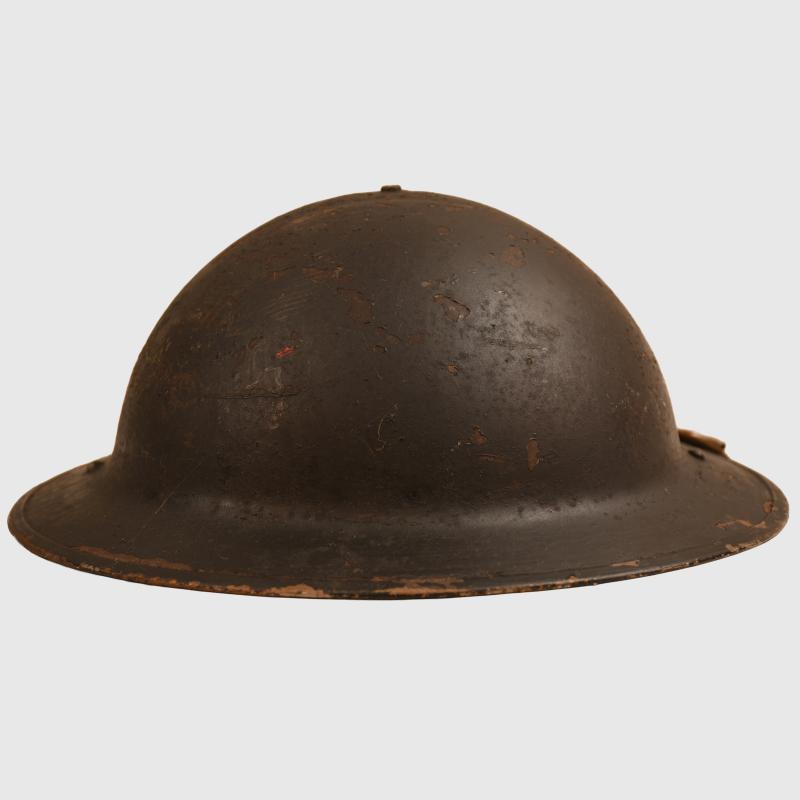 BRITISH WWII NATIONAL FIRE SERVICE BRODIE HELMET, IDENTIFIED.