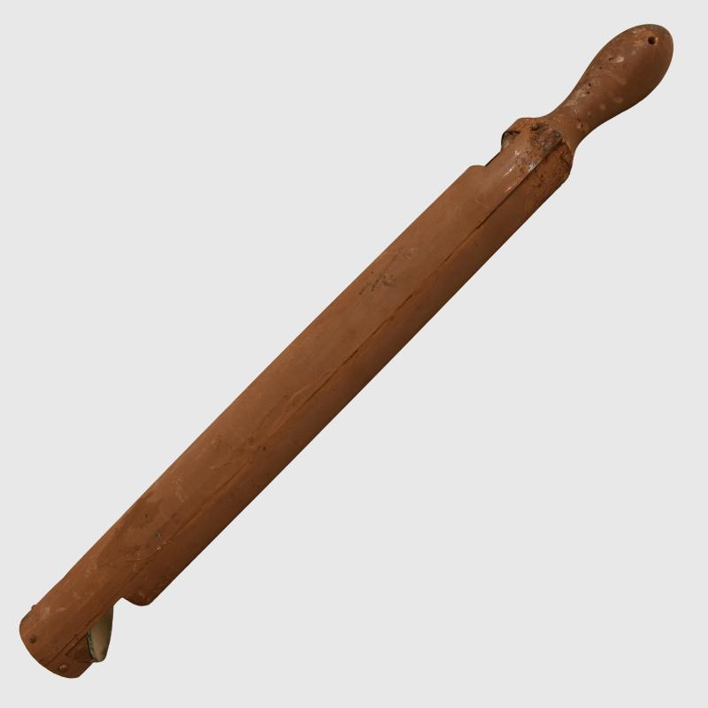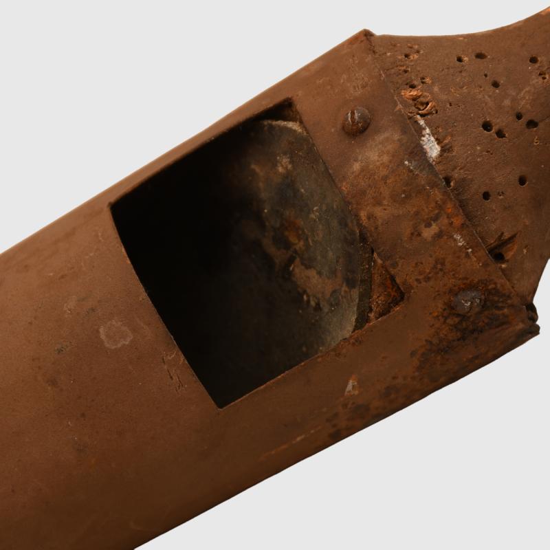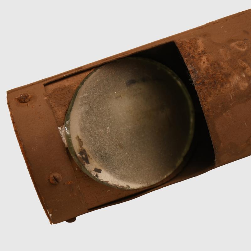 A stored condition trench periscope of the tubular form 54 cm in length , original brown paint finish remaining, both mirrors present but suffering from age, slight corrosion where the tubular part of the periscope meets the wood handle that does have some woodworm.