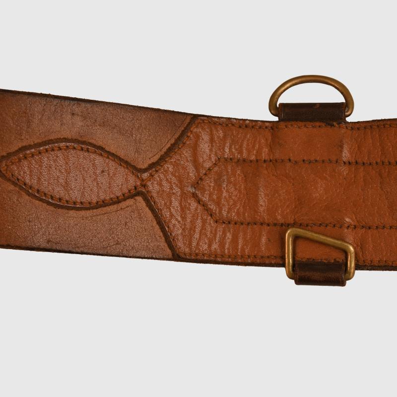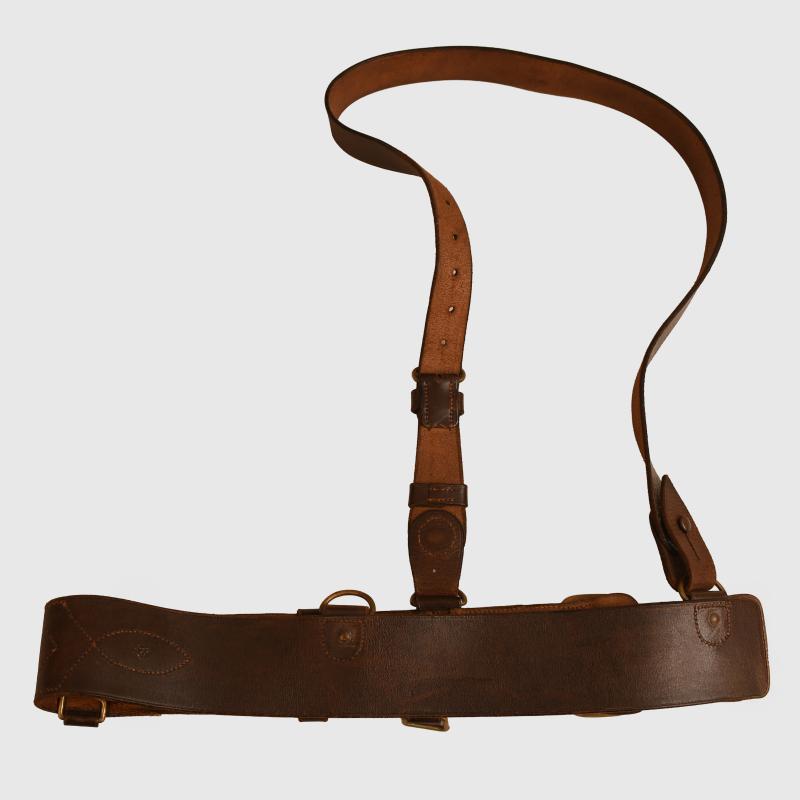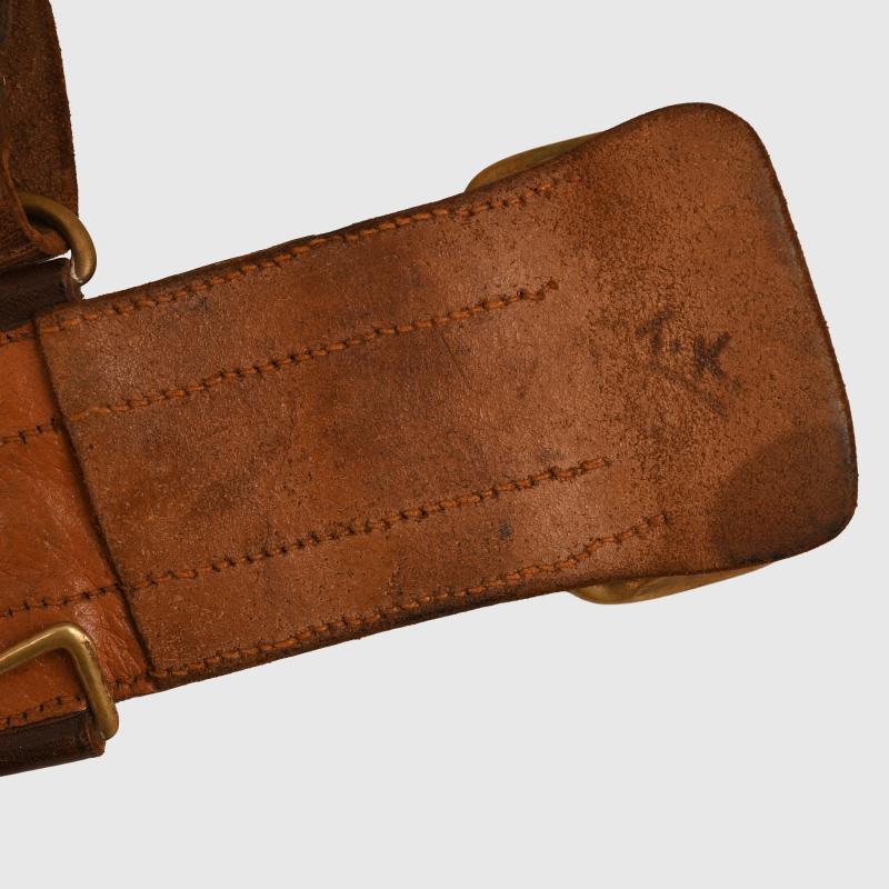 An exceptionally good undated example of the brass and leather waist belt and cross strap for a World War II or possibly World War I British officers uniform.