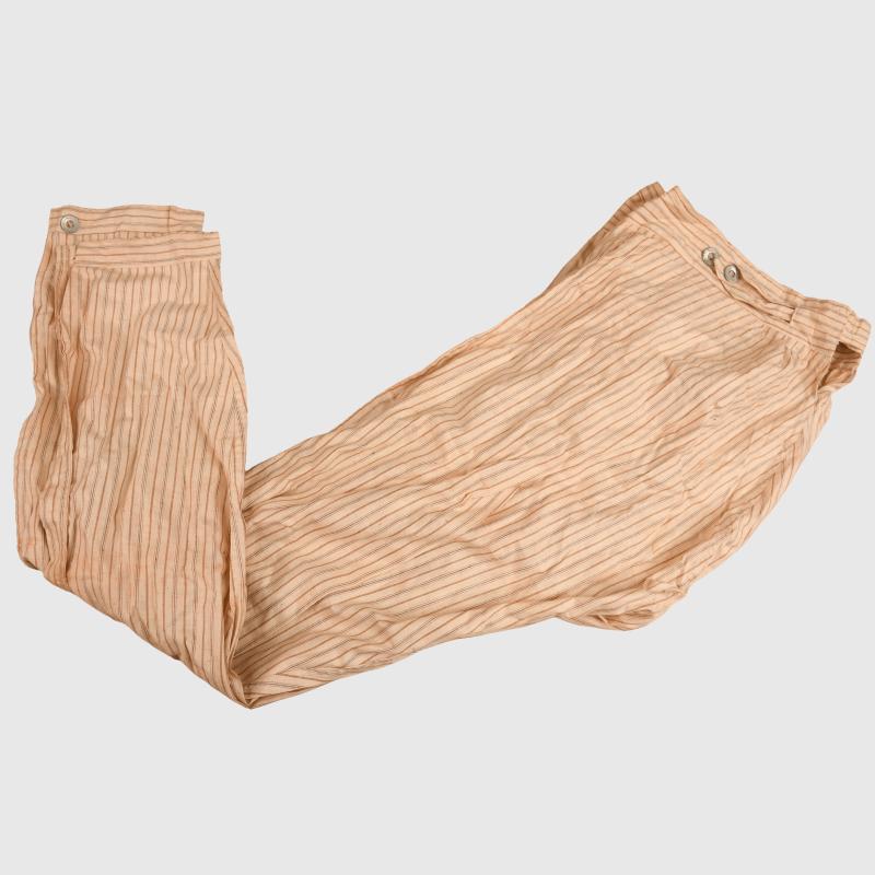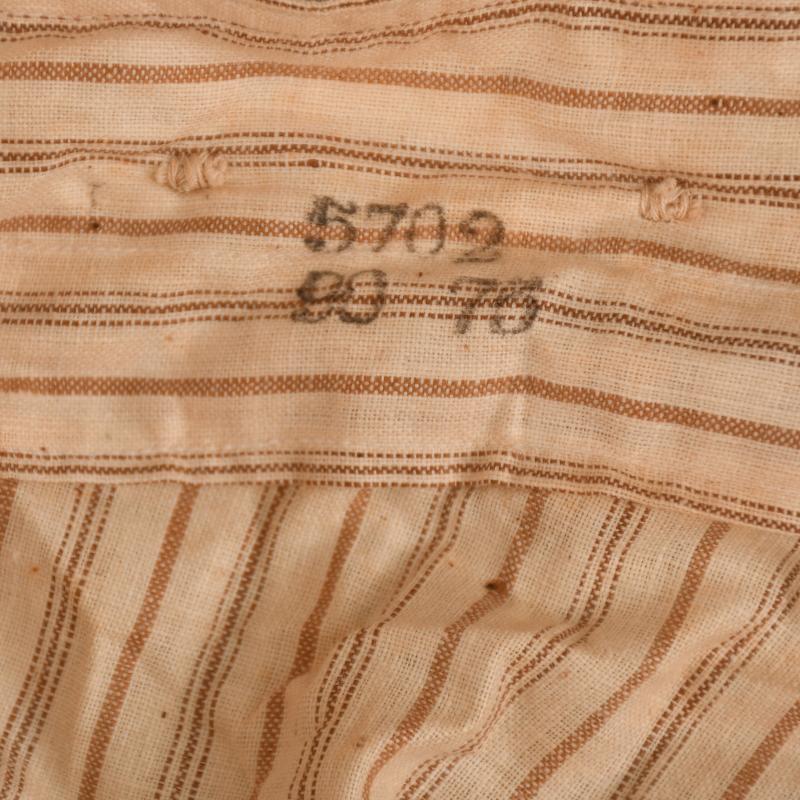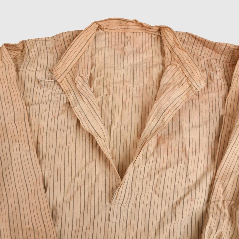A mint unissued set for a French World War I soldier, comprising the collarless shirt with three button closure and a pair of the under trousers. All buttons appear to be present, slight storage staining, the only markings visible within the waistband of the under trousers.