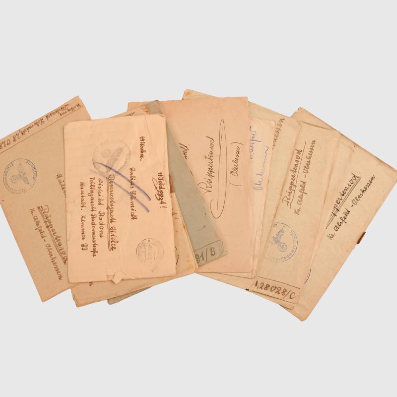 15 letters sent to the family Schmidt from their son Richard Schmidt, feldpost number 28028C. The date range of the letters is from 1940 to 1943. Not translated, worthy of further research, a highly interesting group.