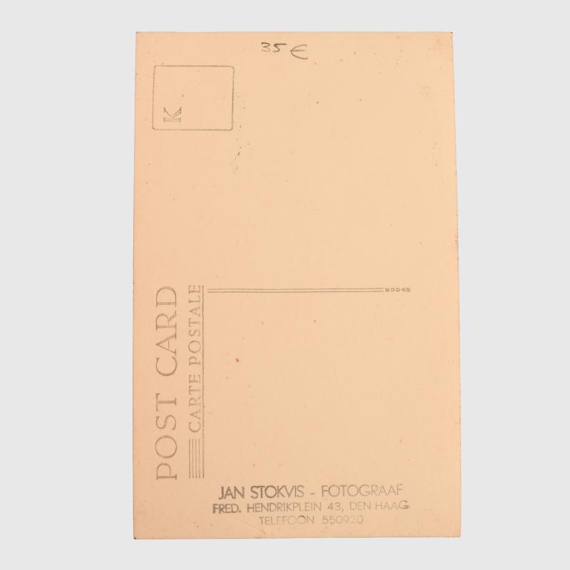 Postcard size, taken in Holland, a very tall army nco wearing steel helmet, binoculars at his neck and map case.