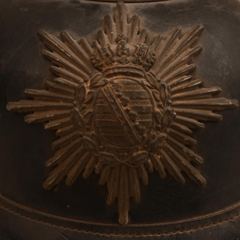 GERMAN WWI BATTLEFIELD PICK-UP UNTOUCHED SAXON ENLISTED RANKS PICKELHAUBE.