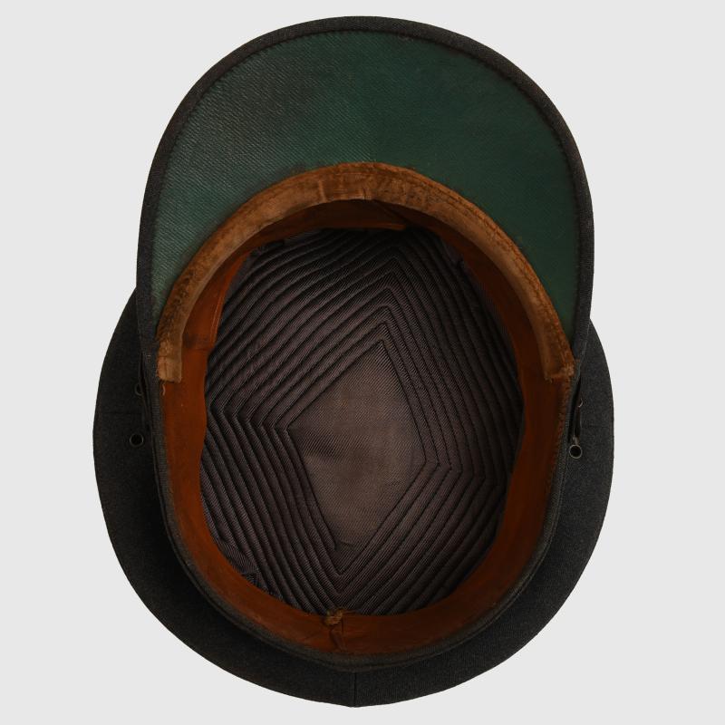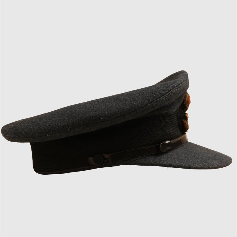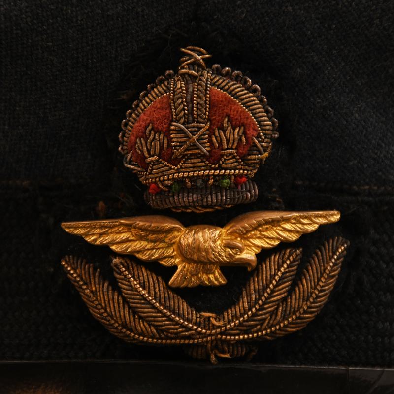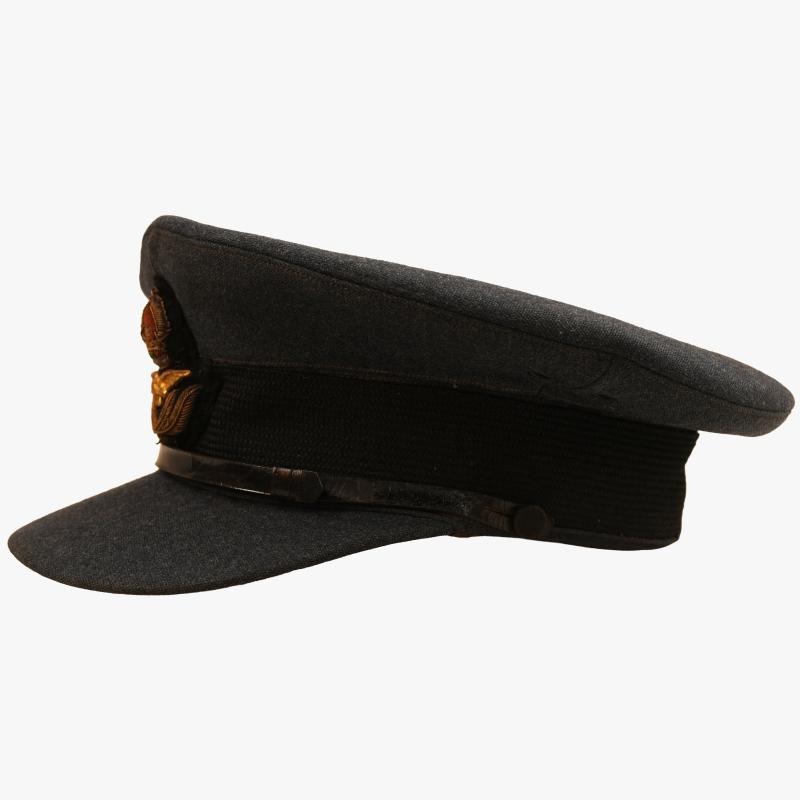 A very nice large size standard RAF officers cap, the interior lining being in the First World War style of circular stitching. Complete with its correct narrow chinstrap and its RAF Kings Crown badge, multi embroidered velvet with metallic albatross to the centre. Lining all complete. These are very difficult to get in large sizes.